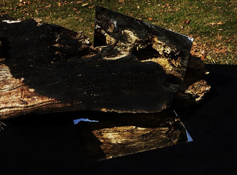 Dans cette série d'installations réalisées à Victoria Park, à Londres, puis photographiées, un ensemble de troncs d'arbres tombés est disposé avec soin, accompagné de miroirs et de tissus noirs. Les miroirs capturent des fragments du ciel, reflétant des étendues bleues sereines qui contrastent fortement avec les textures terreuses des arbres coupés. Ce dialogue visuel entre les miroirs et les éléments naturels invite à une contemplation plus profonde à travers le prisme du « miroir de l'esprit » du maître zen Bankei. L'« esprit miroir » de Bankei incarne un état de pure conscience, reflétant toutes choses sans attachement ni distorsion. Ici, les miroirs servent de métaphores à cette conscience éveillée, présentant des reflets immaculés du ciel et de l'environnement environnant. Pourtant, les reflets ne sont pas parfaits : ils sont déformés par les angles et les formes des miroirs, nous rappelant que nos perceptions sont souvent fragmentées et incomplètes. Les arbres et le ciel apparaissent fragmentés, leurs images déformées et tordues, suggérant la nature fluide de la réalité et de la perception. La présence du tissu noir introduit un élément de nihilisme, symbolisant le vide ou le « néant » souvent associé à la pensée existentielle. Cette obscurité enveloppe les arbres, suggérant que la véritable clarté et l'éveil ne proviennent pas de l'abondance de lumière, mais d'une compréhension intime et de l'acceptation du vide. La couleur noire, qui absorbe toute la lumière, est un symbole puissant de l'« inconnaissabilité » ultime et du vide inhérent au cœur de l'existence. Parmi les troncs éparpillés, certains laissés à la décomposition naturelle et d'autres coupés et disposés, les miroirs reflètent des images déformées du ciel et des arbres. Ces distorsions nous rappellent la nature fragmentée et imparfaite de la perception humaine. L'interaction entre la lumière et l'obscurité, la réflexion et l'absorption, crée une symphonie visuelle qui évoque la nature éphémère de la vie et les cycles de croissance et de décomposition.